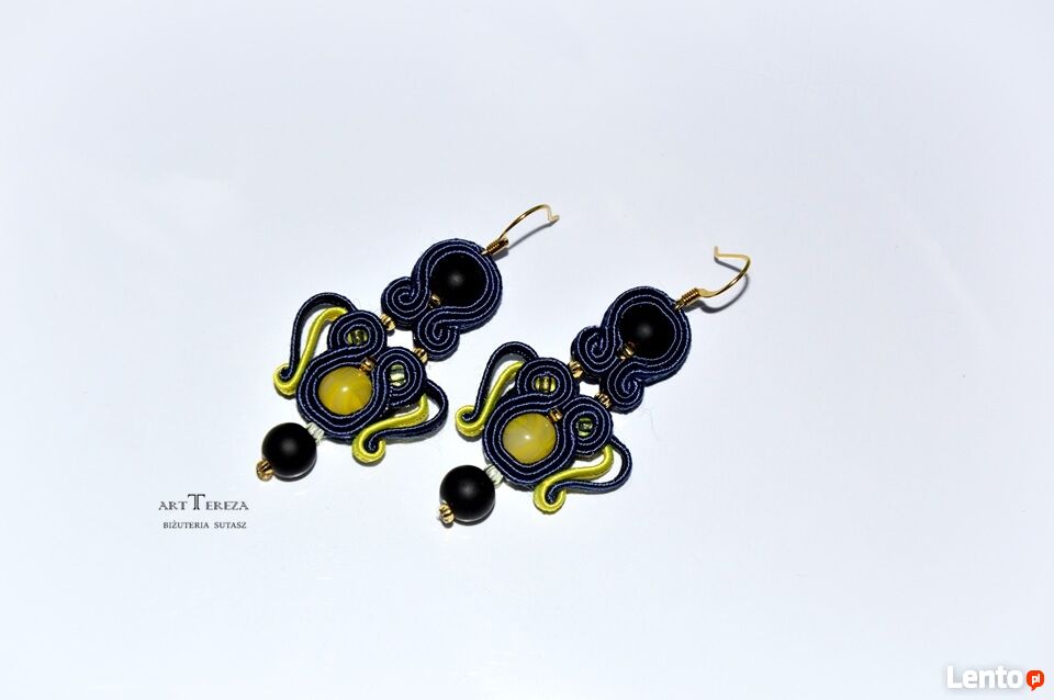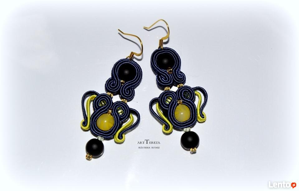 kolczyki sutasz niebieski i żółty, biżuteria sutasz